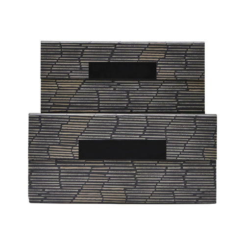 House Doctor 2er-Set Boxen "Stripe", schwarz