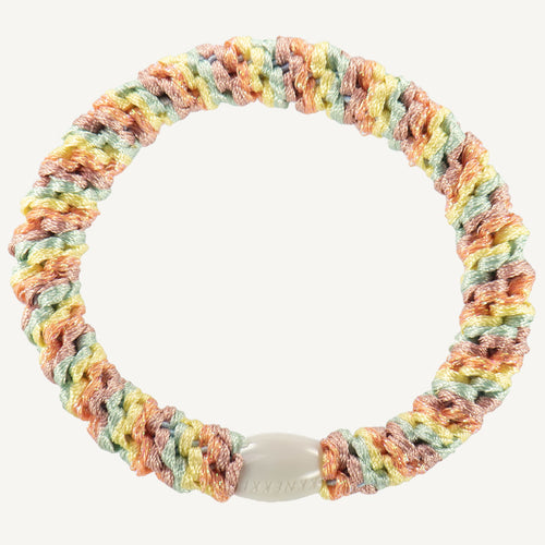 Kknekki - farbenfrohe Haargummis, die für festen Halt sorgen, aber gleichzeitig sanft zum Haar sind. Die Haargummis werden aus über 60 einzelnen Fäden geflochten und mit dem Markenzeichen - einer bunten Perle - veredelt. Der perfekte Schmuck für Haar und Handgelenk!