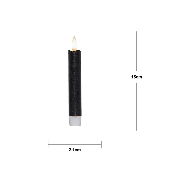 Dieses Set aus 2 schwarzen LED-Stabkerzen mit Echtwachs-Ummantelung ist eine praktische und ungefährliche Alternative zu echten Kerzen. Der gewellte Rand lässt die Kerzen besonders authentisch wirken.