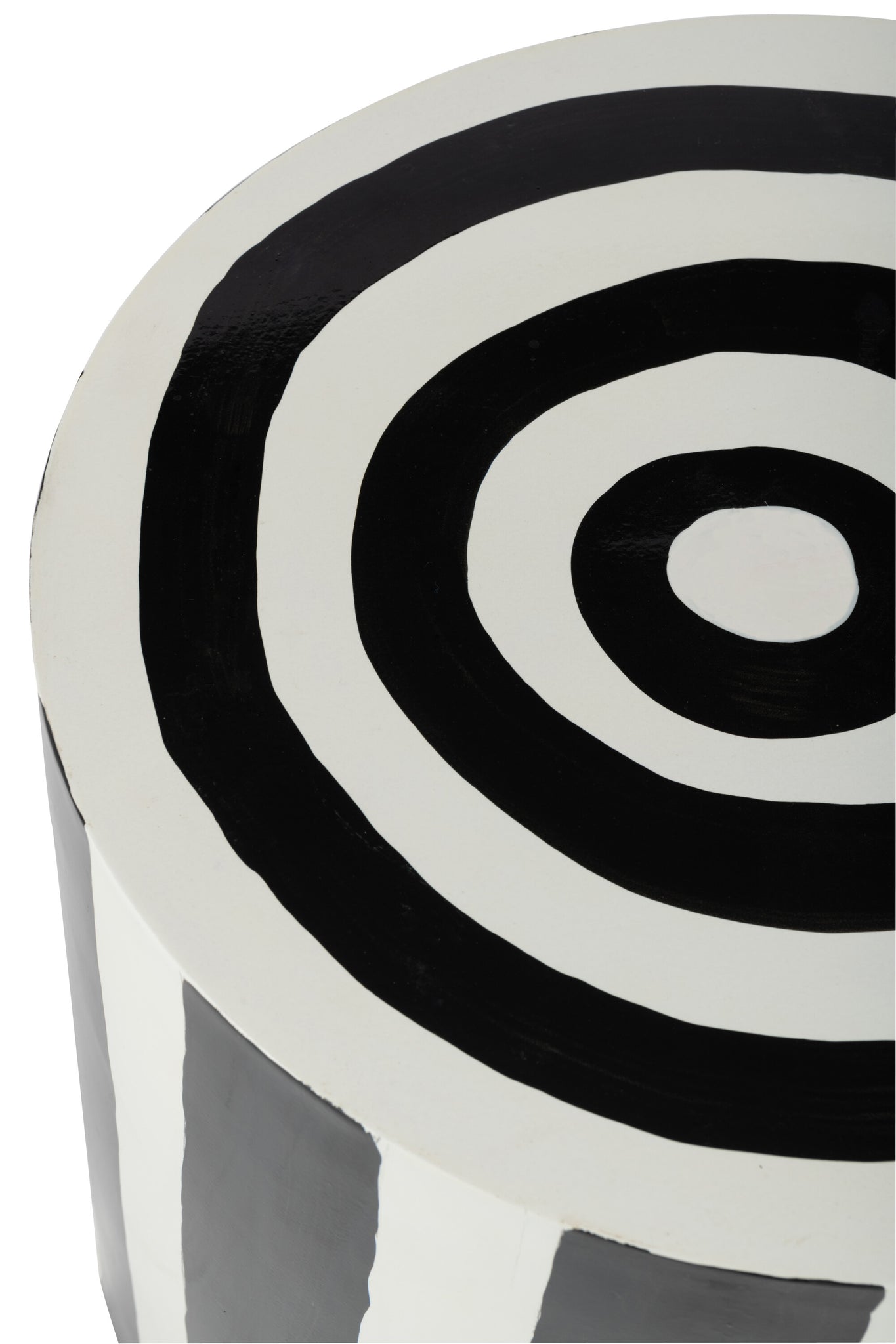 Der stylische Beistelltisch im coolen Op-Art-Design ist ein echter Hingucker! Durch das plakative Streifenmuster in schwarz-weiß wird der Tisch zum echten Statement-Piece, das wie ein kleines Kunstwerk in der Einrichtung wirkt.