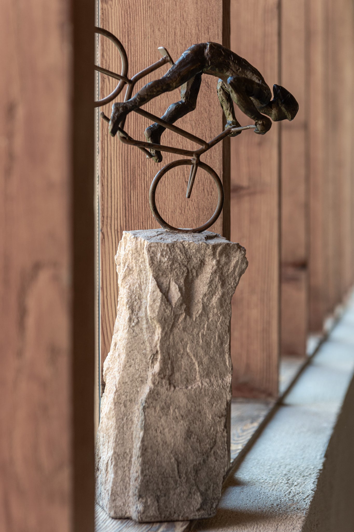 Material: Figur und "Fels" Polyresin, Fahrrad Metall