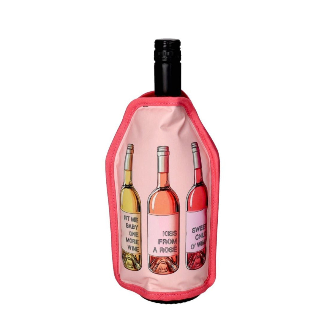 Dieses Modell kommt mit einem Motiv von drei stylischen Weinflaschen - Weiß, Rosé & Rot. Verziert mit einer rosa Paspel.