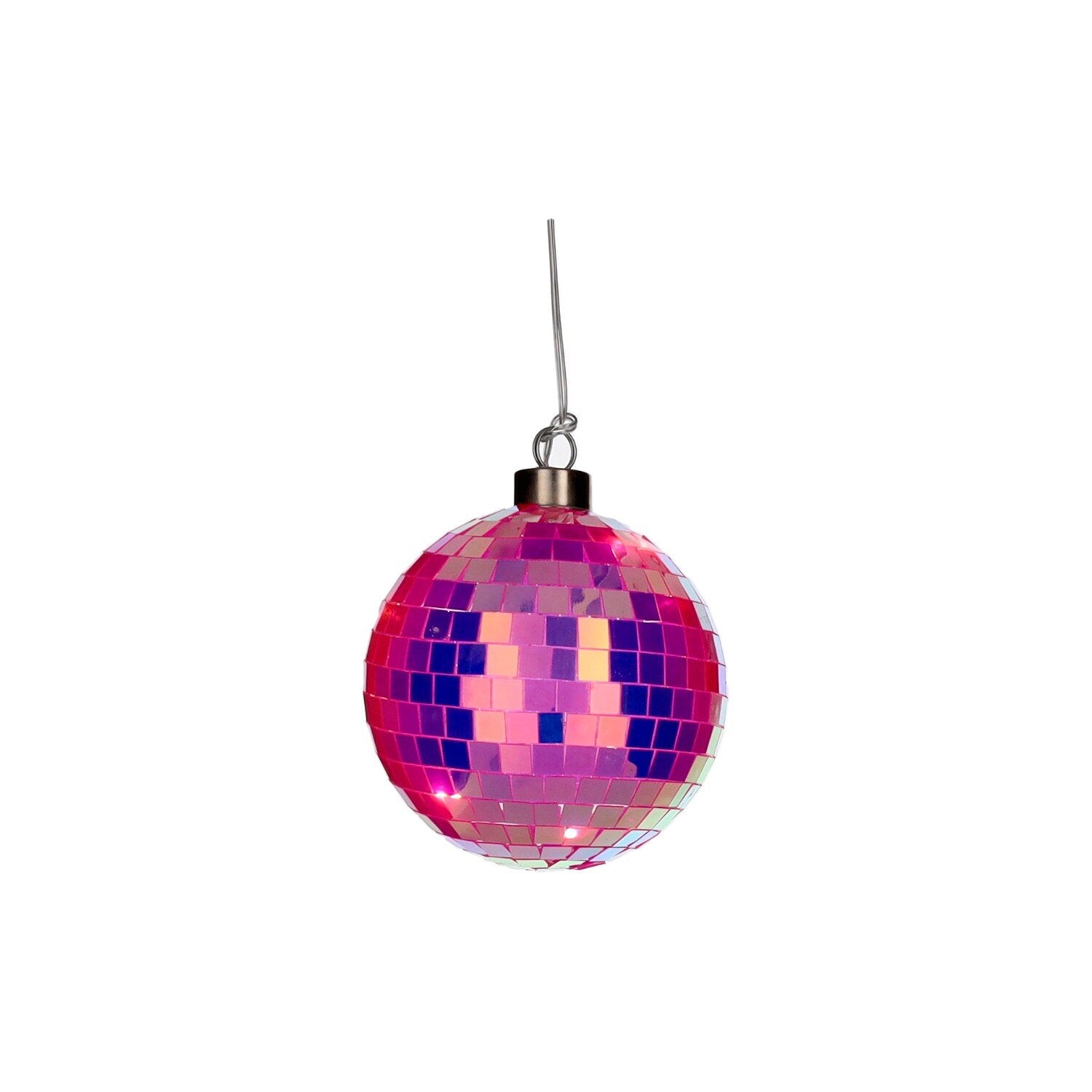 Die Discokugel von Gift Company kommt in iriserendem Pink und ist von innen mit LED-Technik beleuchtet.