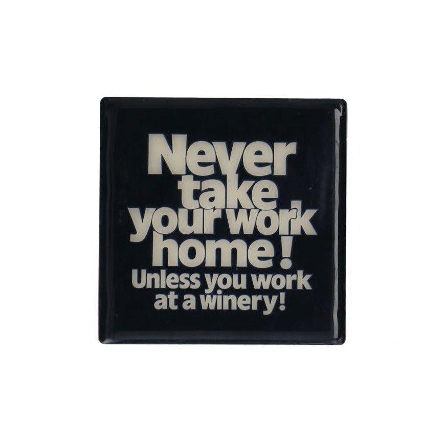 Der Untersetzer aus der "Love Tiles"-Reihe von Gift Company kommt mit dem guten Rat "Never take your work home! Unless you work at a winery!" in eleganter, schwarz-weißer Optik. Die perfekte Ergänzung zu einer guten Weinflasche als Geschenk!