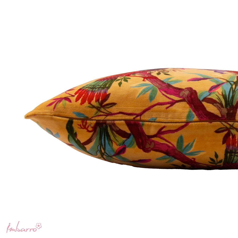 Das Kissen "Paradise" besticht mit einem opulenten Muster aus Blumen und Vögeln, das dem Namen des Kissens alle Ehre macht. Die kräftigen Farben des weichen Samtstoffs sind ein echter Eyecatcher und bereichern jede moderne Einrichtung.