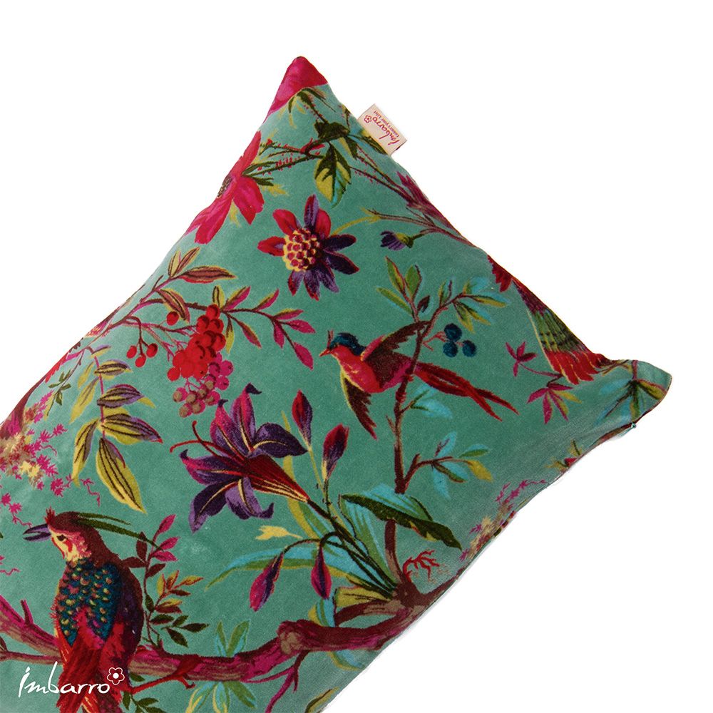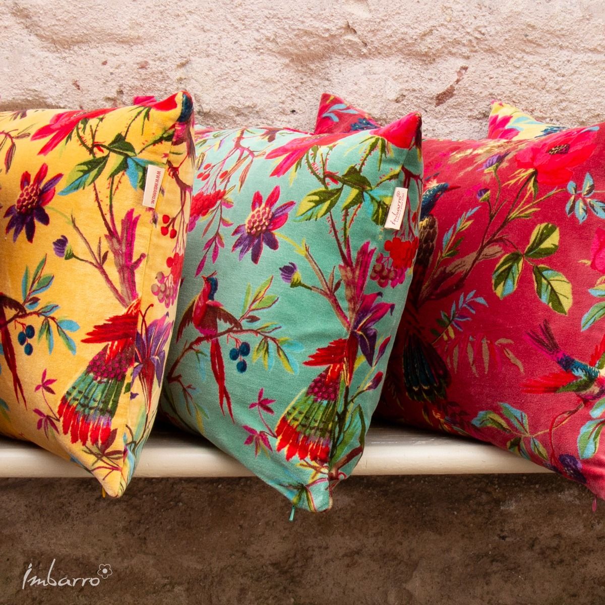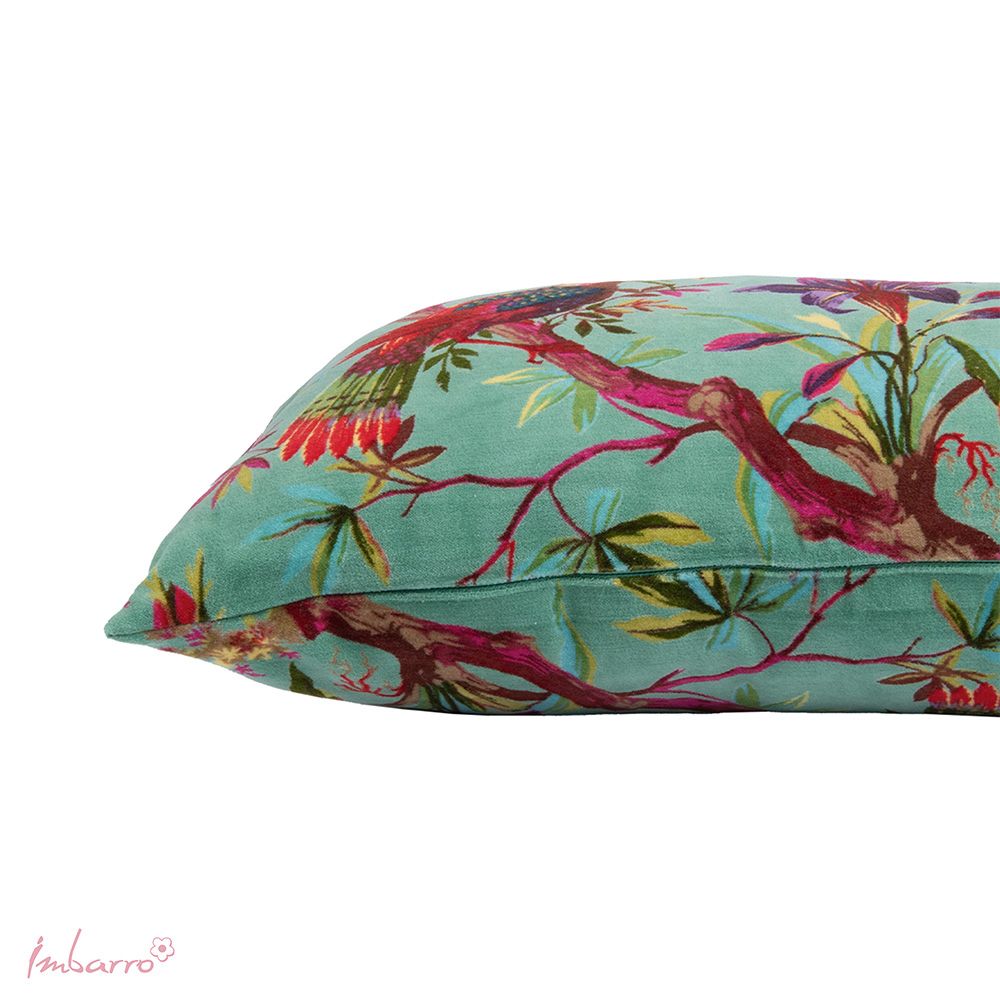 Das Kissen "Paradise" besticht mit einem opulenten Muster aus Blumen und Vögeln, das dem Namen des Kissens alle Ehre macht. Die kräftigen Farben des weichen Samtstoffs sind ein echter Eyecatcher und bereichern jede moderne Einrichtung.