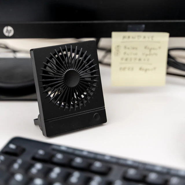 Der Mini-Ventilator ist das unverzichtbare Sommer-Accessoire! Der kleine Ventilator hat drei Gebläsestufen, die für eine leichte und angenehme Abkühlung sorgen. Bei Betrieb wird er von einer blauen LED beleuchtet. Der kabellose Betrieb und das kompakte Format erlauben es, den Ventilator überall mit hinzunehmen: An den Schreibtisch, in´s Café oder in die Bahn.