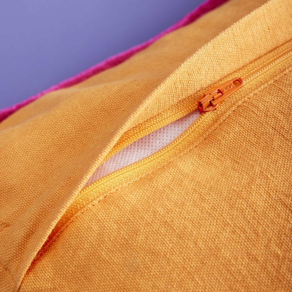 Die Kissenhülle hat einen Reißverschluss, damit die Füllung zur Reinigung entnommen werden kann.