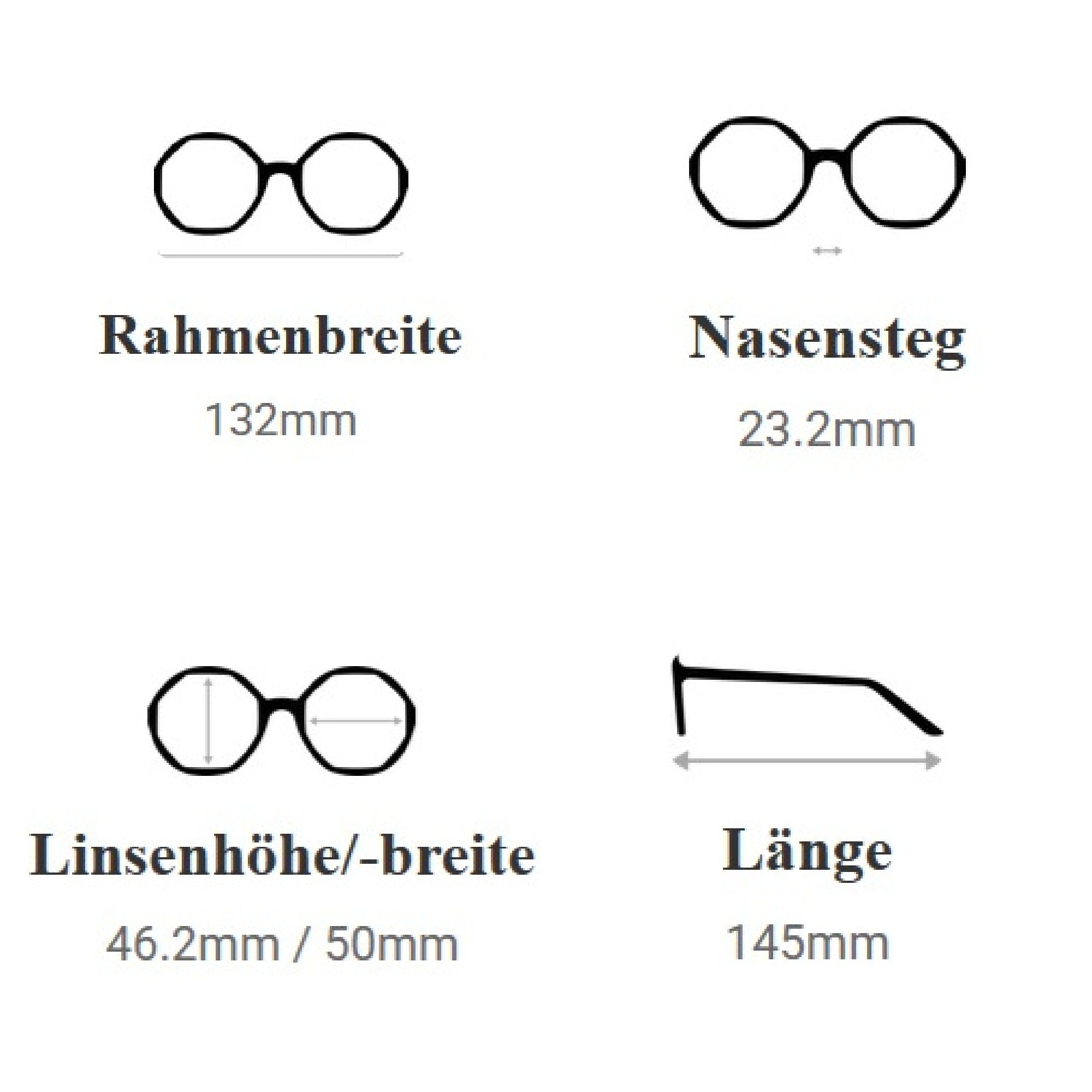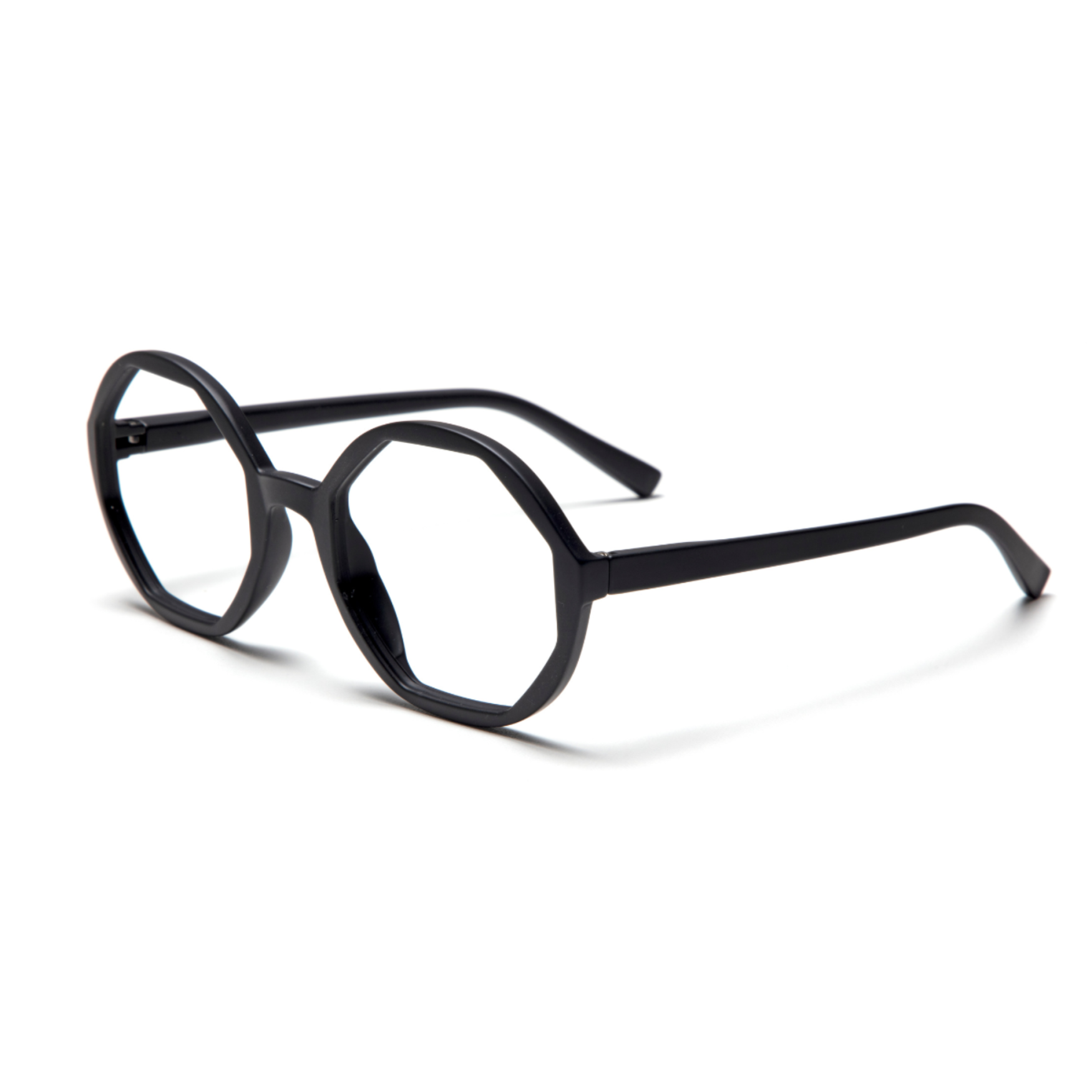 Das Modell "Lolita" hat eine achteckige Form und kommt hier in einem klassischen Schwarz mit mattem Finish, das die geometrische Form des Gestells besonders akzentuiert.