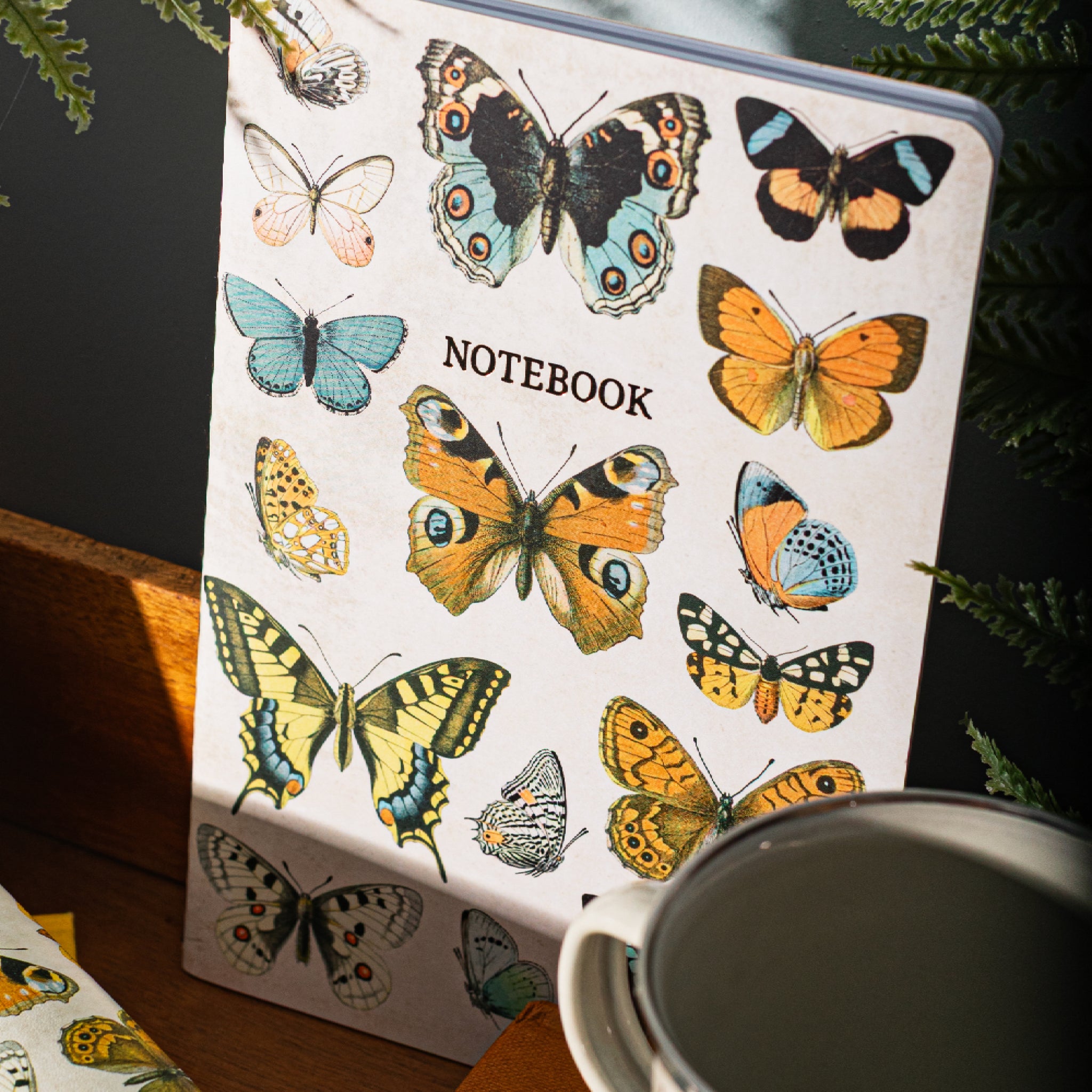 Das Notizheft mit Schmetterlingsmotiv eignet sich perfekt, um seine Gedanken auf Papier festzuhalten. Die 80 Seiten des Notizhefts sind liniert.