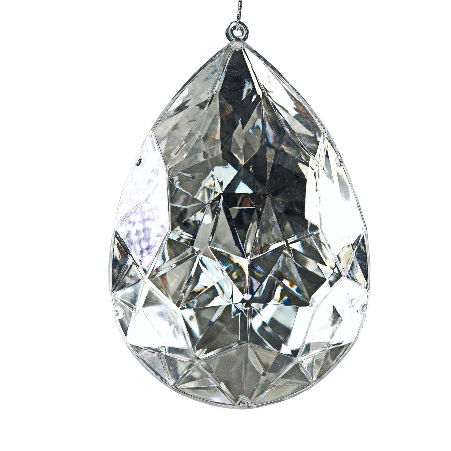 Der XL-Anhänger im Diamanten-Design funkelt im Licht fast genau so schön wie ein echter Schmuckstein! Die elegante Tropfenform reflektiert das Licht mit ihren vielen Facetten und macht den Anhänger zu einer extravaganten Dekoration - hier in klassischem Weiß/Silber!